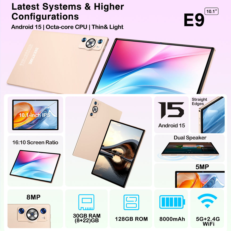Tablette Android 15 2-en-1 DEERTiME 10" FHD, Octa-Core, 128GB, Wi-Fi 6, USB-C