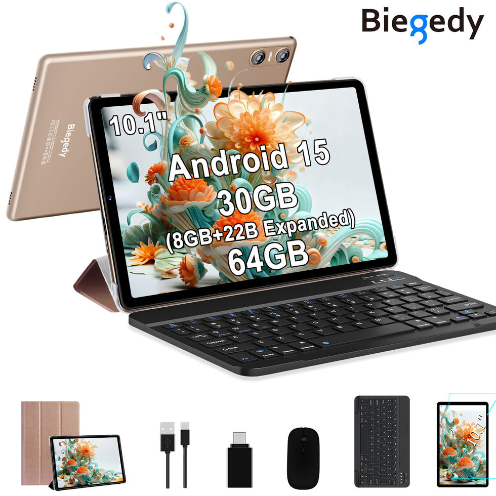 Tablette Biegedy 2025 10,1" Android 15, Octa-Core, 30 Go RAM, Wi-Fi 5G
